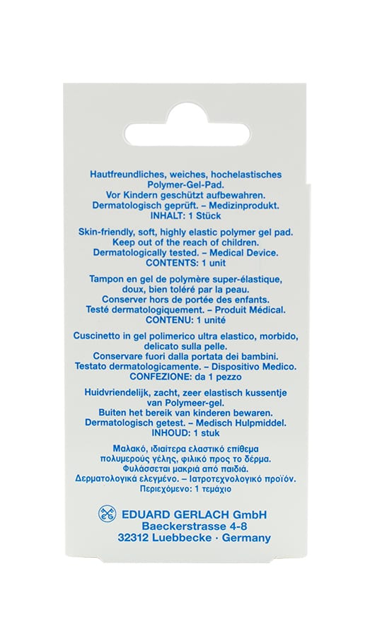 The soft and extremely adaptable elastic bandage includes a supple, highly elastic polymer gel pad in the frontal foot region and the area of the large toe pad. The cushion provides immediate relief of pressure pain, redistributes pressure, and provides immediate protection and relief. Due to its special shape, it fits into any shoe and is very comfortable to wear. Fixation on the large toe ensures perfect positioning on the foot and prevents slippage.